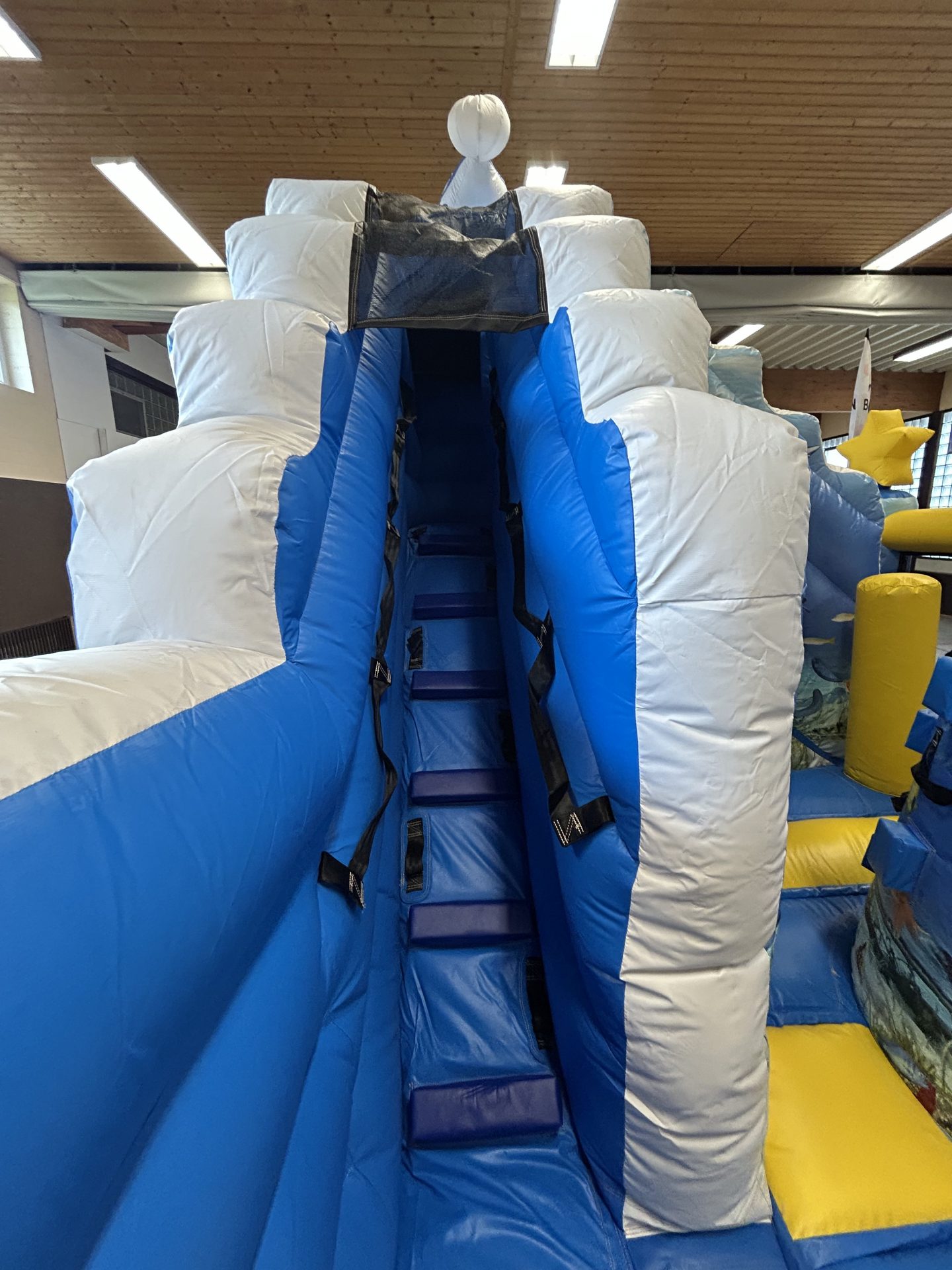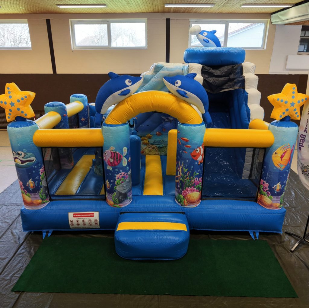 Egal ob Kindergeburtstag, Schulfest oder Firmenfeier – das frische Blau, die freundlichen Delfine und der große Hüpfbereich machen diese Ozean-Hüpfburg zum absoluten Highlight.